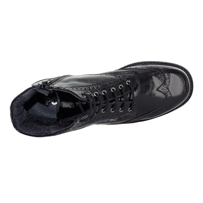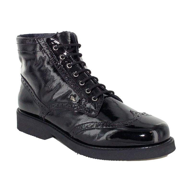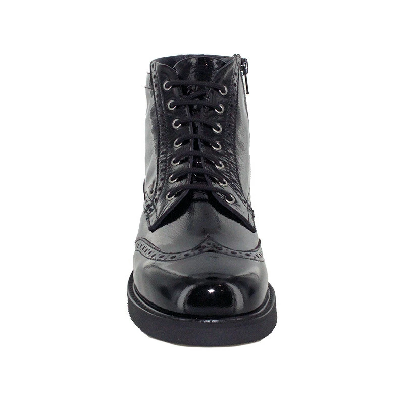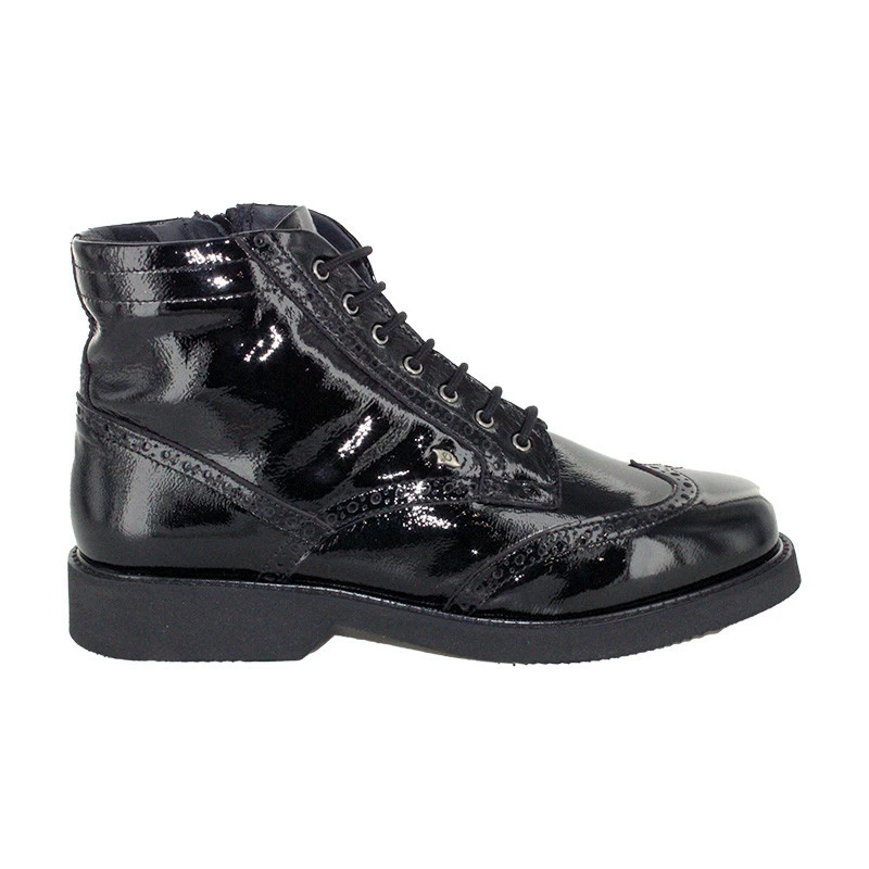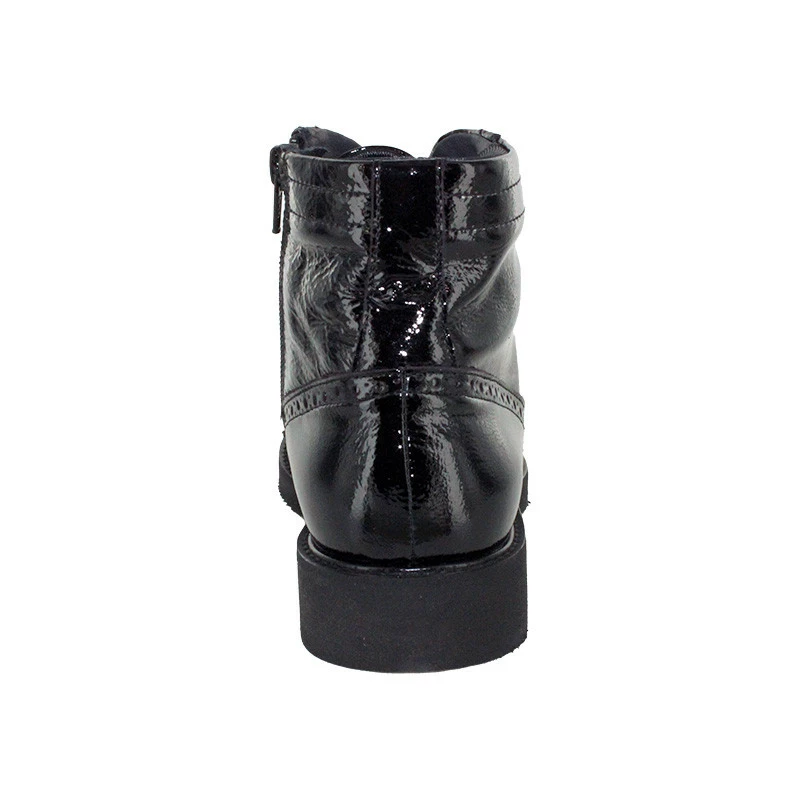 Très faciles et rapides à chausser au quotidien, elles se ferment par zip coté extérieur après les avoir ajustées à chaque pied par un premier laçage. Entièrement confectionnées en cuir vernis très souple, ces bottines femme sont doublées en textile matelassé très agréable. Elles disposent de semelles amovibles, un atout important pour les remplacer par vos semelles orthopédiques. De plus, vous apprécierez le confort de marche et la qualité de la semelle extérieure en VIBRAM.