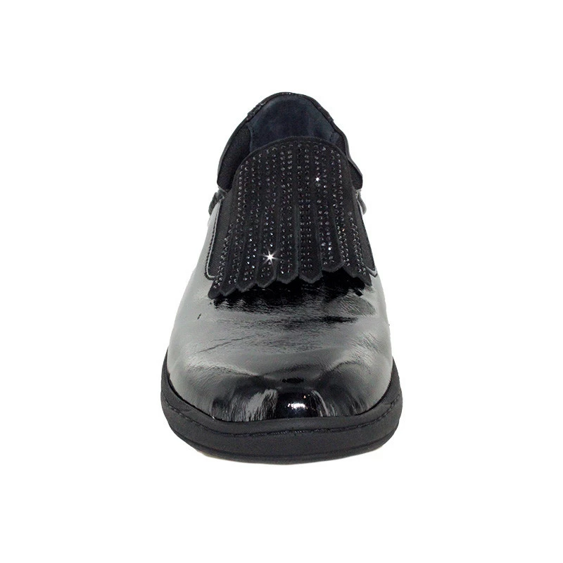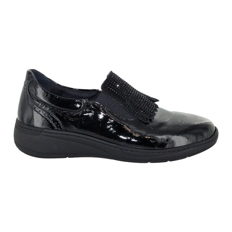 Idéales pour les pieds larges, les chaussures femme PAGLIETTA de la marque PODOLINE sont confectionnées en cuir vernis très souple : un vrai bonheur pour vos pieds ! Ces chaussures confort disposent de deux élastiques d’aisance sur les cotés pour favoriser l’insertion et le maintien de vos pieds pendant la marche.