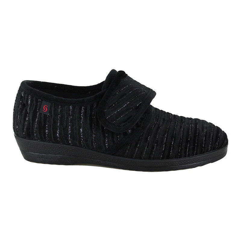 Conseillés pour les pieds larges et sensibles, les chaussons Velcro pour femme S4168 de la marque SABATINI sont confectionnés en textile velours extensible. Votre confort sera ainsi préservé au quotidien.